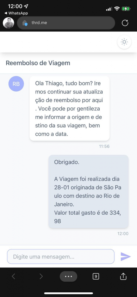 O cliente receberá um link no formato “https://thrd.me/zitrxf” que pode ser acessado pelo celular ou computado de forma rápida sem a necessidade de efetuar login, pois o link é gerado exclusivamente para esta conversa de forma segura e exclusiva.
